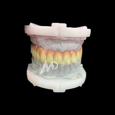De keramische laag wordt zorgvuldig aangebracht om een levensechte doorschijnendheid, natuurlijke schaduwmatching en een optimale oppervlakte-textuur te bereiken.Deze combinatie zorgt ervoor dat de kroon of brug naadloos met de tandvlees van de patiënt kan samenkomen, die zowel cosmetische aantrekkingskracht als functionele levensduur biedt.