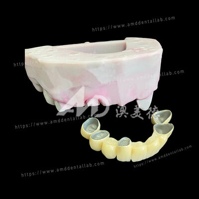De dikte van de beugel en de laagvorming van het porselein volgen standaard laboratoriumprotocollen.